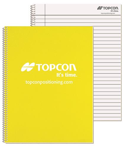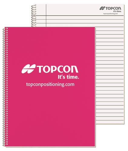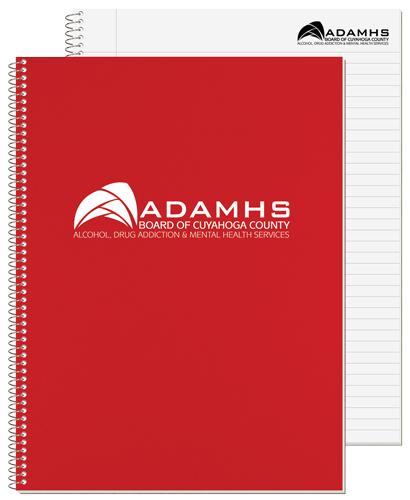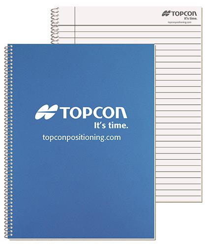 This notebook features a 30 pt. poly front cover and white heavyweight 24 pt. back cover coated on 1 side. Choose between 1 color on outside of front cover or a blank cover with a custom insert sheet printed full color on 1 side. Includes 50 Lb. white offset sheets that have rules and a custom logo printed on 1 side of each sheet in 1 color. Comes coil bound on the side. 8 3/16″ W x 10 7/8″ L